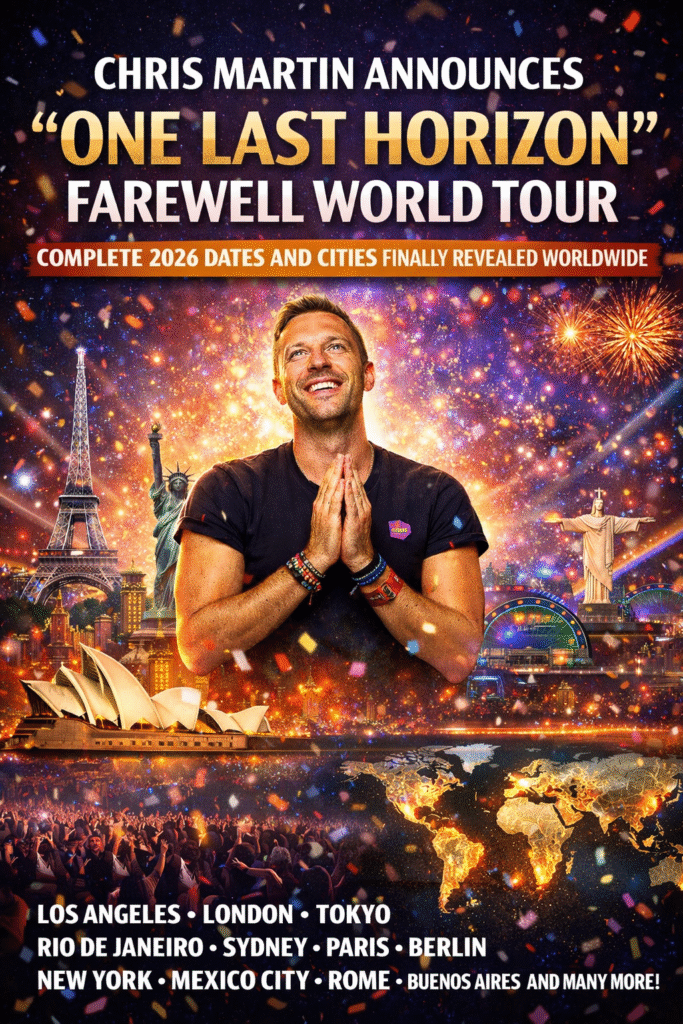 Chris Martin Announces “One Last Horizon” Farewell World Tour: Complete 2026 Dates and Cities Finally Revealed Worldwide Music fans around the globe are rejoicing as **Chris Martin**, lead vocalist of Coldplay, announces his much-anticipated “**One Last Horizon**” Farewell World Tour for 2026. This tour marks a monumental chapter in Martin’s career, promising to be…