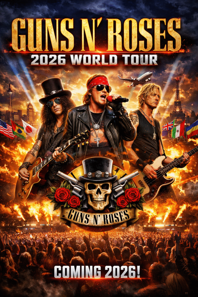Legendary hard rock icons Guns N’ Roses have officially announced their highly anticipated 2026 World Tour, sending waves of excitement across the global rock community.