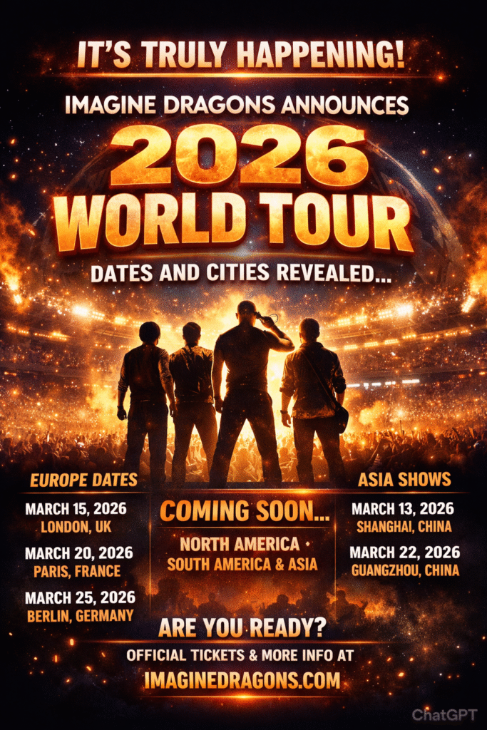 Imagine Dragons have officially announced their highly anticipated 2026 World Tour, sending waves of excitement through their global fanbase. After months of speculation and subtle hints dropped across social media, the Grammy-winning rock band confirmed that they will hit the road for a massive, multi-continent tour beginning in early 2026. The tour is set to…