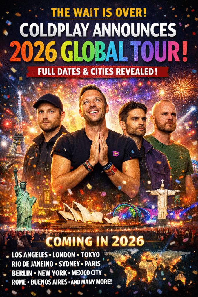 It’s official: Coldplay are ready to light up the globe once again. The world-renowned British band has officially announced their highly anticipated 2026 World Tour, revealing a full lineup of dates and cities that span continents and promise an unforgettable musical celebration. The announcement has ignited excitement across social media, with fans from every…