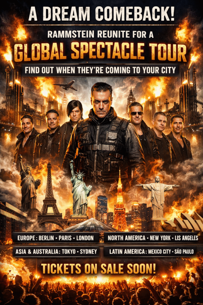 When **Rammstein** step onto a stage, it’s never just a concert — it’s an eruption. After months of speculation and anticipation, the German industrial metal titans are igniting excitement once again with what fans are calling a dream comeback: a Global Spectacle Tour set to shake stadiums across continents. Known for their thunderous sound,…