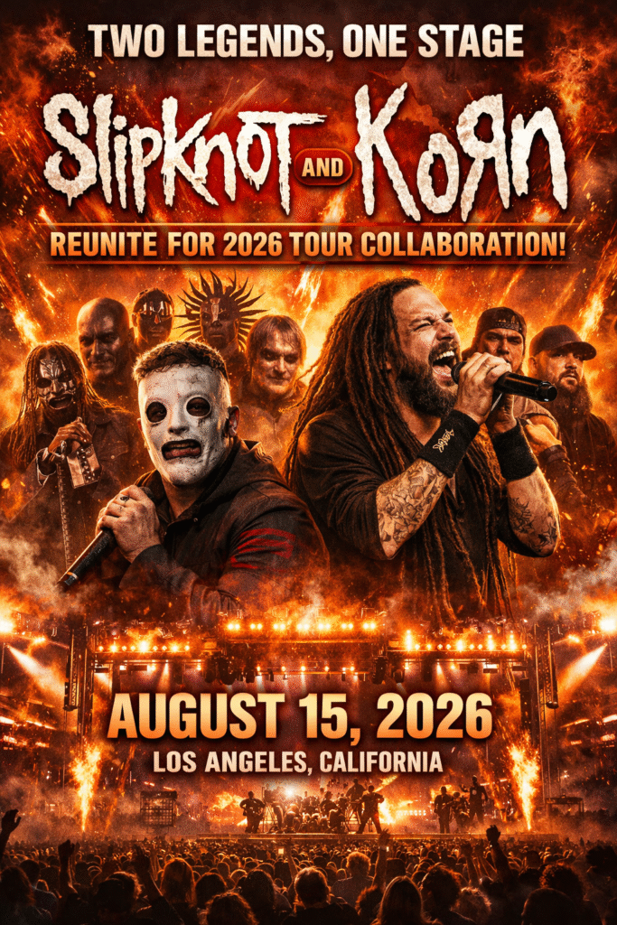 The heavy music world is buzzing with excitement as Slipknot and Korn officially announce their long-awaited 2026 reunion tour collaboration. Titled *“Two Legends, One Stage,”* the tour promises to bring together two of the most influential forces in metal for a historic live experience that fans have dreamed about for years. The first confirmed…