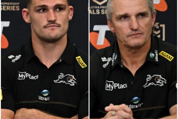 The image captures a quiet, deeply emotional moment set in a cemetery. A man with…