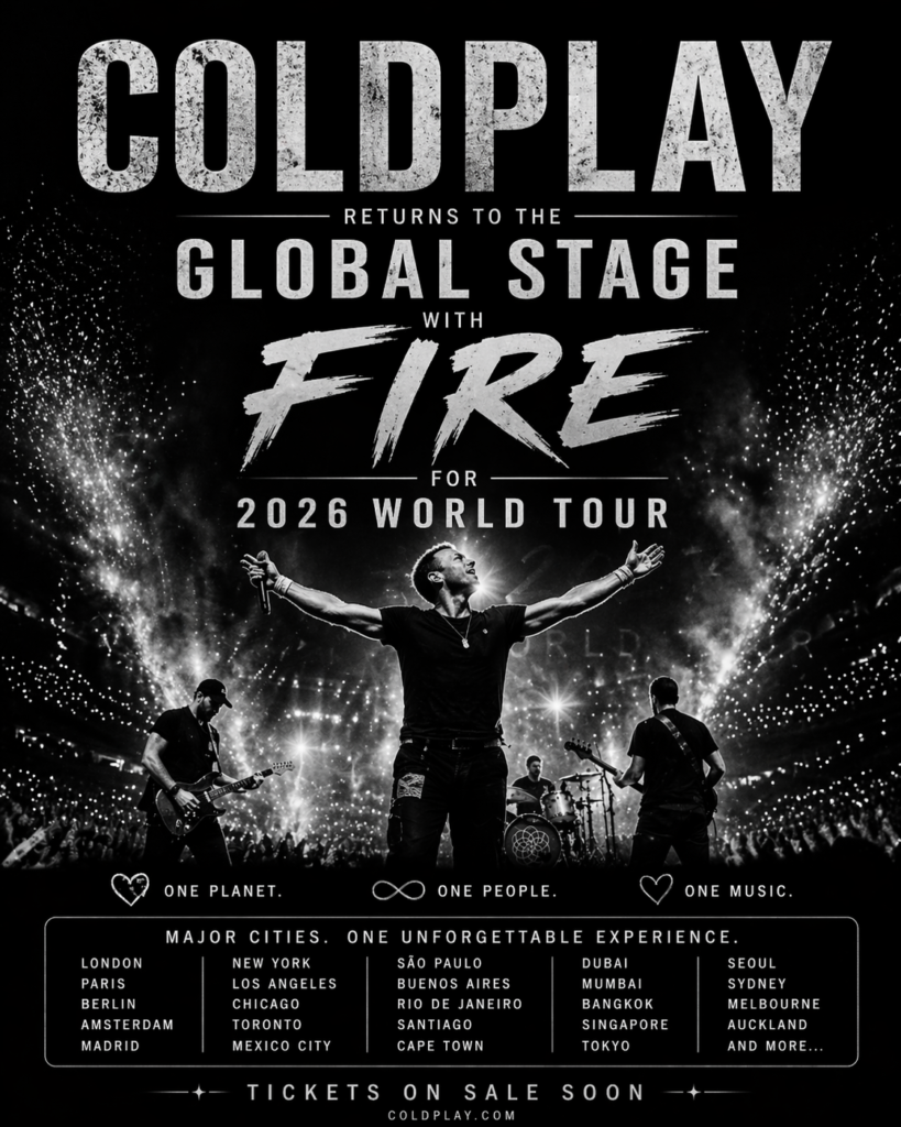 **Coldplay Returns to the Global Stage with Fire for 2026 World Tour** Global superstars Coldplay are set to ignite the world once again as they officially announce their 2026 World Tour, a spectacular return to the global stage that promises to be bigger, brighter, and more electrifying than ever. Known for their emotionally charged…
