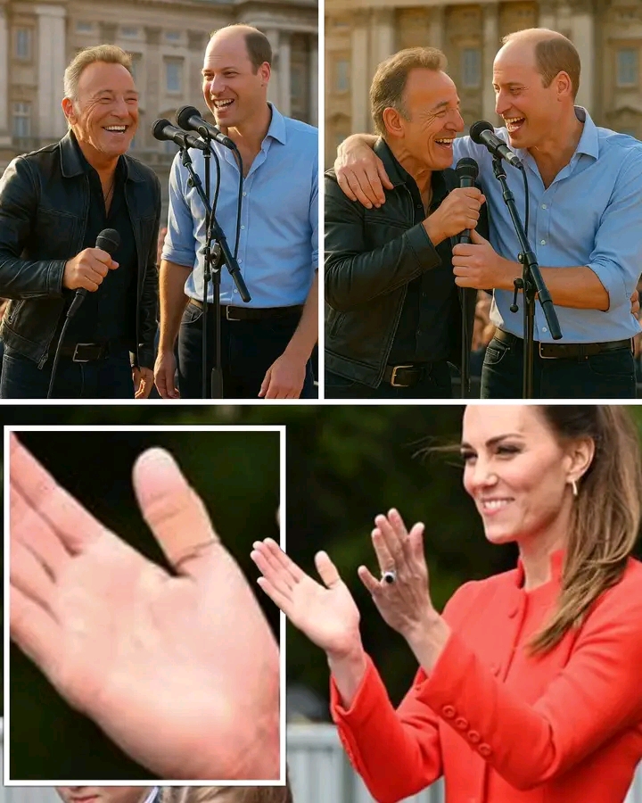 Phones shot up, the internet exploded in real time, and one camera caught the now-viral image of Princess Kate in the audience, hand over her chest, mouth agape in shock and delight. The crowd, already buzzing from Springsteen’s electrifying set, seemed to enter a collective state of disbelief as the palace grounds echoed with rock anthems and royal flair.
