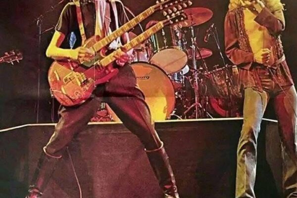 A rare photograph captures Led Zeppelin during a rehearsal at Manticore Studios in Fulham, UK, in early 1977—a session notable not only for the candid glimpse of the band behind the scenes, but also for showcasing Jimmy Page playing his elusive Gibson ES-5 Switchmaster. This semi-hollowbody guitar, with its distinctive sunburst finish and ornate controls,…