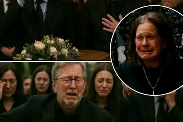 “Still My Guitar Gently Weeps…” — Inside the candlelit cathedral in London, a silence thicker than stone hung in the air as the world gathered to say goodbye to Ozzy Osbourne. Draped in black and grief, thousands watched with trembling hearts as Eric Clapton and Sir Paul McCartney stepped into the light — not just to perform, but to mourn. “We’ve lost a brother, a misfit angel, a rebel with a wounded heart,” Paul whispered, barely holding back tears. Then came the opening notes of While My Guitar Gently Weeps — fragile, aching, eternal. Clapton’s hands shook as he played, every note a goodbye. McCartney’s voice cracked on the first line: “I look at you all, see the love there that’s sleeping…” and the entire cathedral seemed to exhale a collective sob. Sharon Osbourne wept into her hands. No one moved. No one breathed. The song — once a Beatles classic, now a funeral hymn — became something holy in that moment. When it ended, Clapton knelt and gently laid his guitar at the foot of Ozzy’s portrait, as if leaving behind part of his soul. McCartney’s final words pierced through the silence: “He didn’t just scream into the void… he made the void scream back.” Then, hand in hand, the two legends walked offstage — their tribute echoing through every tear-streaked face in the room. And though Ozzy was gone, in that cathedral filled with mourning and music… he had never felt more alive