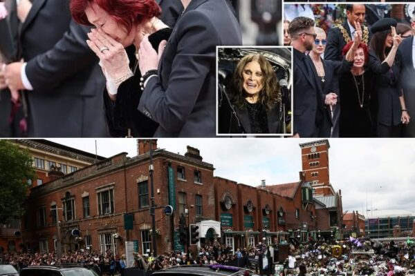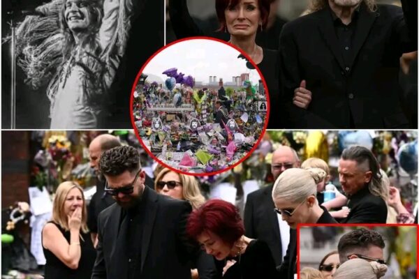 At Ozzy Osbourne’s funeral, there were no flashing lights, no fanfare—just a chapel heavy with grief and love. Sharon Osbourne walked slowly down the aisle, dressed in simple black, her steps measured, her face unreadable.