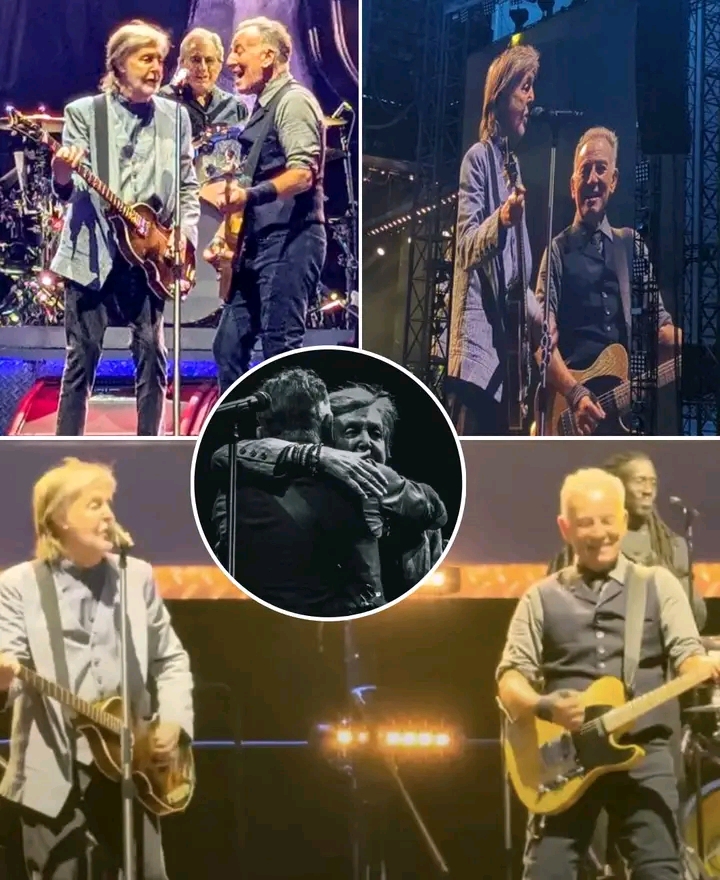 The moment froze the entire stadium. It wasn’t fireworks or flashy effects that stole the breath from the audience — it was reverence. The Boss and the Beatle. One from New Jersey, one from Liverpool. Two titans who shaped the sound of generations, now sharing a single stage without warning.