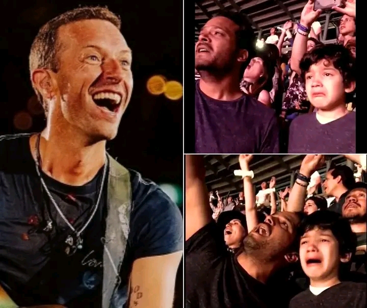 Without hesitation, Chris knelt down, smiled softly, and began to sing *“Fix You”* directly to him. The first gentle chords filled the air, and something extraordinary happened. The boy, completely overcome with emotion, buried his face in his hands as tears streamed down his cheeks. His body trembled as his dad held him close, whispering words of comfort, while thousands of fans around them watched in reverent silence.