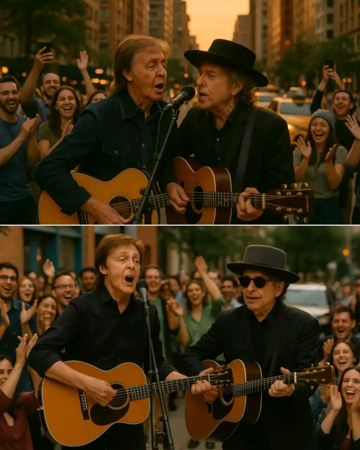 In a moment that seemed plucked from a dream, Paul McCartney and Bob Dylan stunned New York City with a spontaneous handshake and impromptu duet that turned an ordinary street into a historic stage. Passersby froze, jaws dropped, as two of the most iconic figures in music history stood shoulder to shoulder, guitars in hand. What began as a quiet conversation outside a Greenwich Village café quickly transformed into an unforgettable performance that stopped traffic, drew crowds, and electrified social media.