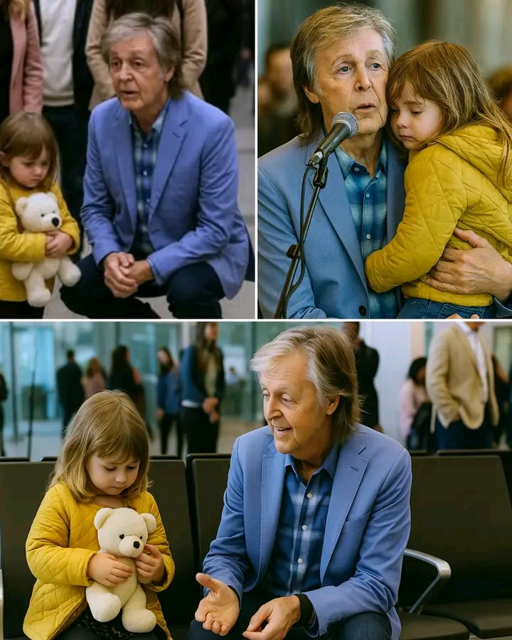 At a bustling international airport, amid the noise and rush of travelers, one quiet act of compassion stood out. Sir Paul McCartney, one of the most iconic musicians of all time, wasn’t performing to thousands or walking a red carpet. He was simply passing through when he noticed something most people missed—a small child, alone and clearly frightened, clutching a worn teddy bear, her eyes wide with confusion.