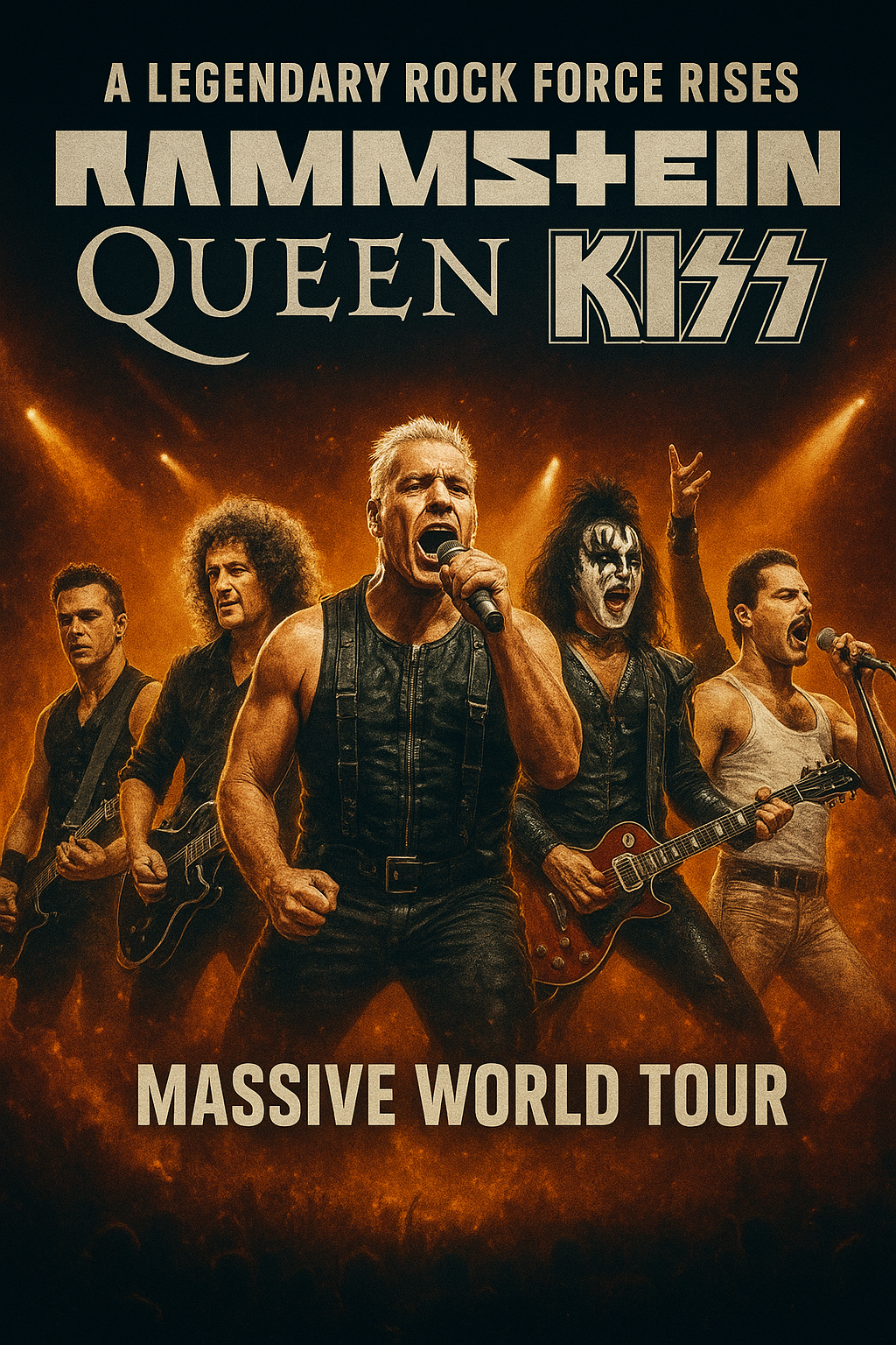 A legendary rock force rises as Rammstein, Queen, and KISS unite for a massive world tour promising unmatched power, spectacle, and energy.