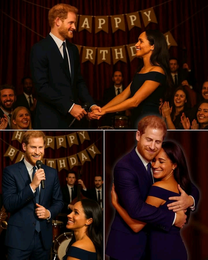 At Meghan Markle’s 44th birthday celebration, held in an intimate candlelit venue filled with close friends and family, the evening carried a mellow charm. A soft jazz tune floated through the room as laughter and clinking glasses filled the air. But the atmosphere shifted when Prince Harry quietly stepped onto the small stage, microphone in hand. The music faded, and the room stilled.
