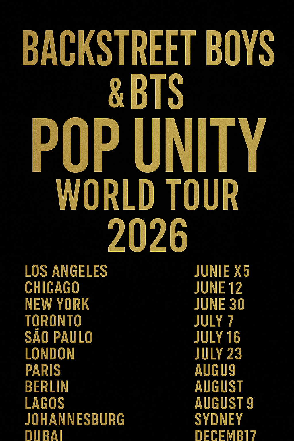 In a moment that sent shockwaves through both pop and K-pop fandoms worldwide, the Backstreet Boys and BTS have officially announced their unprecedented 2026 **“POP UNITY WORLD TOUR.”** For the first time in music history, two of the biggest global boy bands of different generations are joining forces for a massive, cross-continental tour that promises to redefine pop culture for years to come.