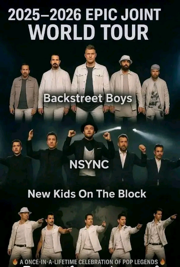 The Backstreet Boys, *NSYNC, and New Kids on the Block are joining forces for an electrifying global stadium tour that promises to redefine pop nostalgia for audiences of every generation. This unprecedented collaboration unites three of the most iconic boy bands in music history, each with its own legacy, devoted fanbase, and unforgettable catalogue of hits. Together, they are set to deliver a once-in-a-lifetime experience that celebrates decades of pop culture influence while introducing their timeless sound to new listeners around the world.