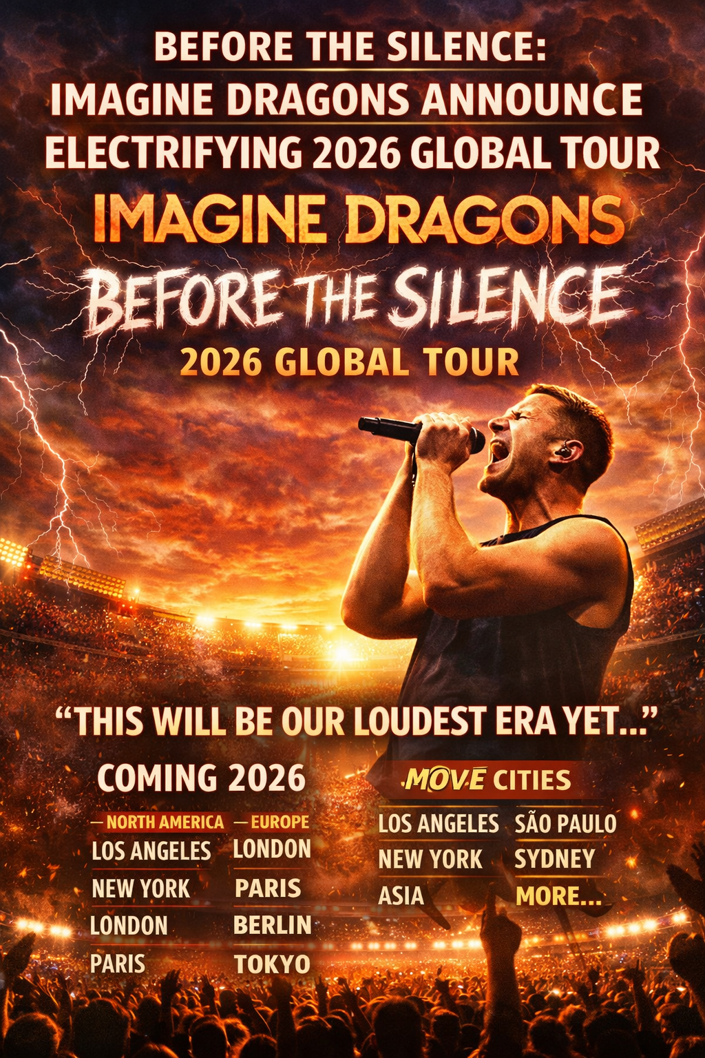 Imagine Dragons have officially set the music world on fire with the announcement of their massive **2026 global tour**, titled *Before the Silence*. Promising raw energy, emotional depth, and stadium-shaking performances, the band has made one thing clear: this next chapter will be their boldest and loudest era yet.