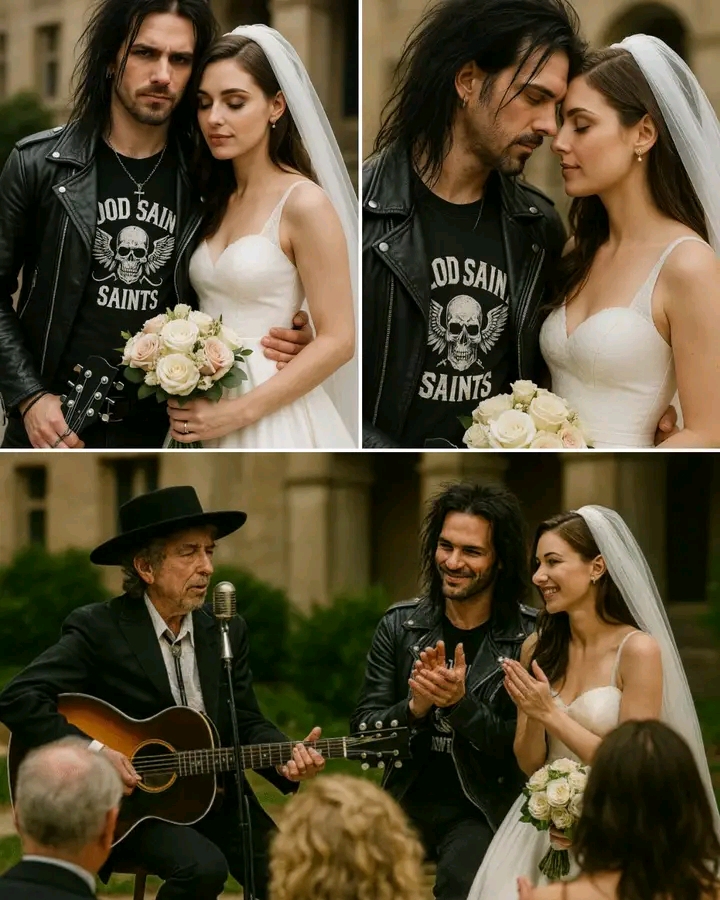 Without a word, Dylan began strumming a melody never heard before—soft, haunting, impossibly poetic. His voice, aged and raw, wrapped around lyrics written *just* for the couple. It wasn’t a cover. It wasn’t a hit. It was a brand-new song, carved from Dylan’s soul, gifted like a blessing.