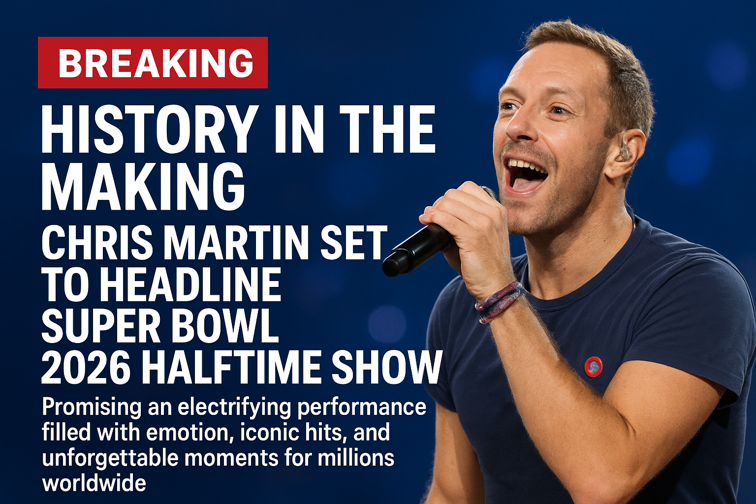 breaking: history in the making — chris martin is officially set to headline the super bowl 2026 halftime show, and the announcement has already sent shockwaves across the music and sports world. the coldplay frontman, known for his soulful voice, heartfelt lyrics, and unforgettable live energy, will take center stage in what promises to be one of the most monumental halftime performances of all time.