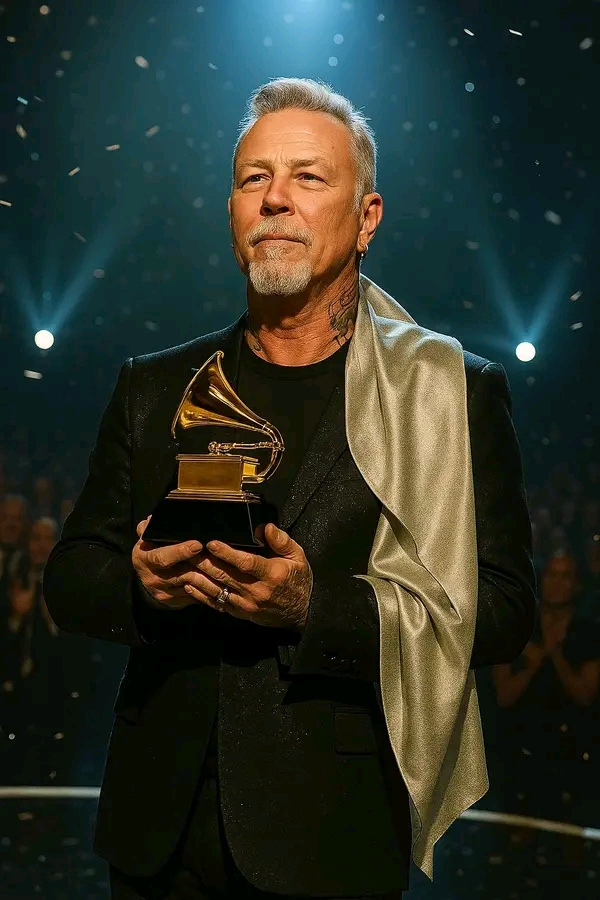 Moments later, emotion filled *Metallica* frontman **James Hetfield’s** eyes as he walked onto the stage at the **2025 Grammy Awards**, clutching the golden gramophone that honored the late **Elvis Presley** with *Best Vocal Performance* for the rediscovered ballad *“Shattered Sky.”*