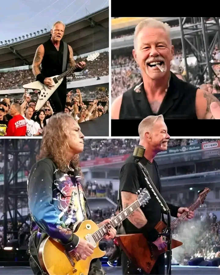 **James Hetfield**, voice trembling yet powerful, stripped the song down to its core — a reflection of vulnerability and endurance. The stage lights dimmed to a warm gold, casting the band in a soft glow as **Kirk Hammett’s** melodic solo soared through the stadium like a confession. Even **Lars Ulrich**, often the storm behind the kit, played with a tenderness rarely seen in the band’s four-decade history.