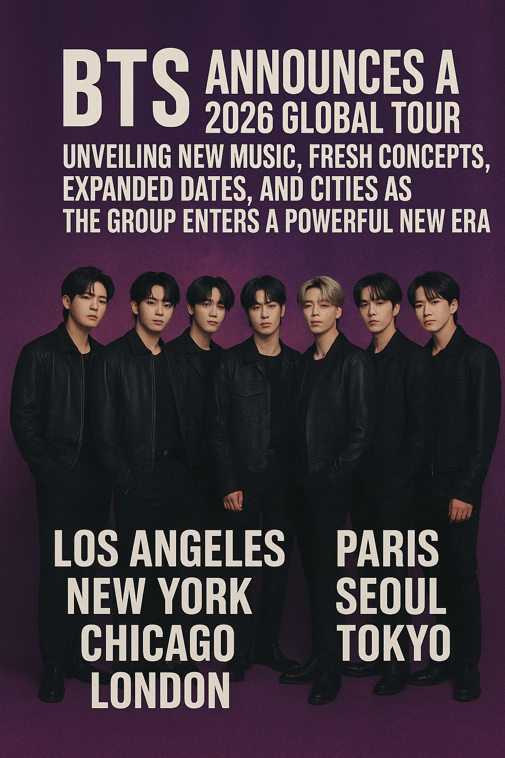 BTS has officially confirmed their long-awaited 2026 global tour, marking one of the most significant moments in their career and in the global music industry. After years of anticipation, military service, and individual artistic growth, the group is returning stronger than ever with a bold vision that promises to redefine their legacy. This tour is more than a comeback—it is the beginning of a new chapter for BTS, one shaped by maturity, renewed energy, and an unwavering connection with their global fanbase.