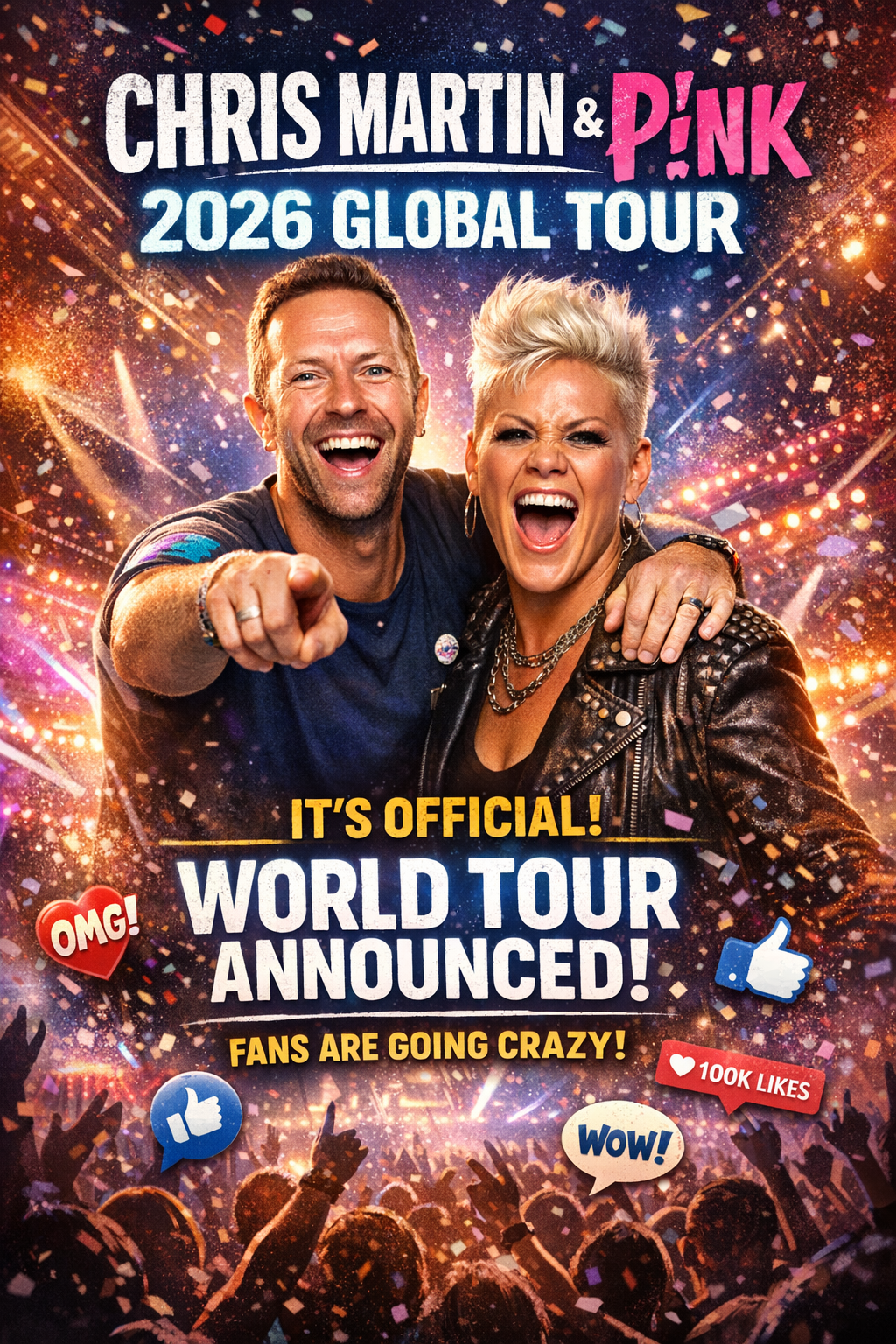 Fans are ecstatic about the collaboration — not just seeing Coldplay frontman **Chris Martin** and pop powerhouse **P!nk** perform their own hits live, but also about the potential for **unique on-stage duets and special set moments**. More details, including routing, support acts, and presale info, are expected soon as official tour promotions roll out.