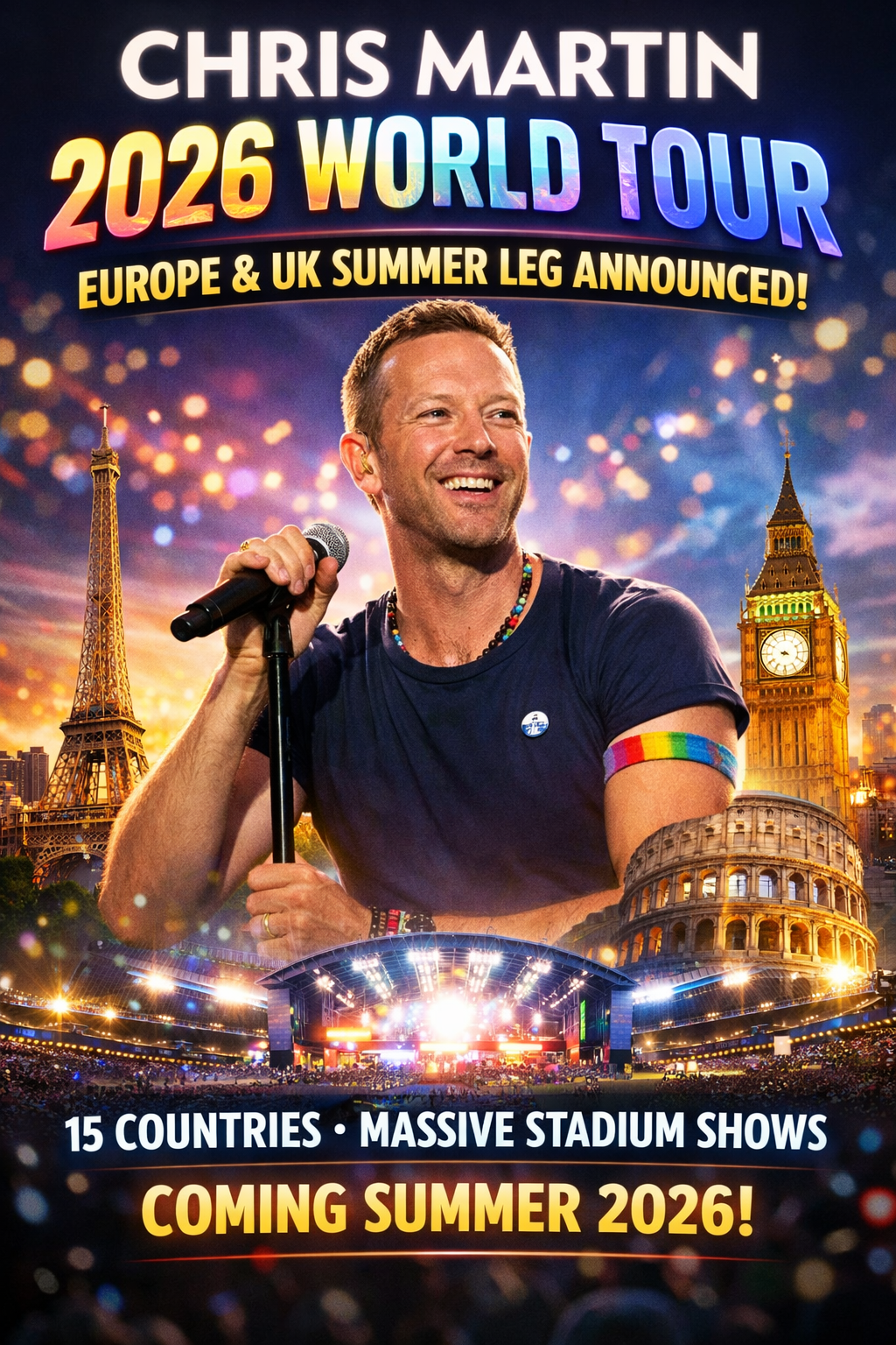Chris Martin has officially announced a 2026 World Tour, sending waves of excitement through the global music community. The highly anticipated tour will feature a massive European and UK summer leg, spanning 15 countries and showcasing some of the largest stadium venues across the continent. Fans can expect an unforgettable live experience as the tour brings together music, innovation, and large-scale production on a truly global level.