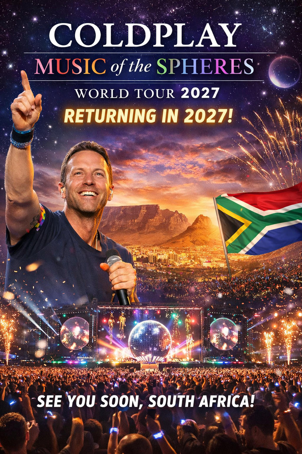 Chris Martin has officially signaled that Coldplay’s record-shattering **Music of the Spheres World Tour** is set to return in **2027**, sending a fresh wave of excitement through fans worldwide — and especially across **South Africa**, where anticipation is already reaching fever pitch.