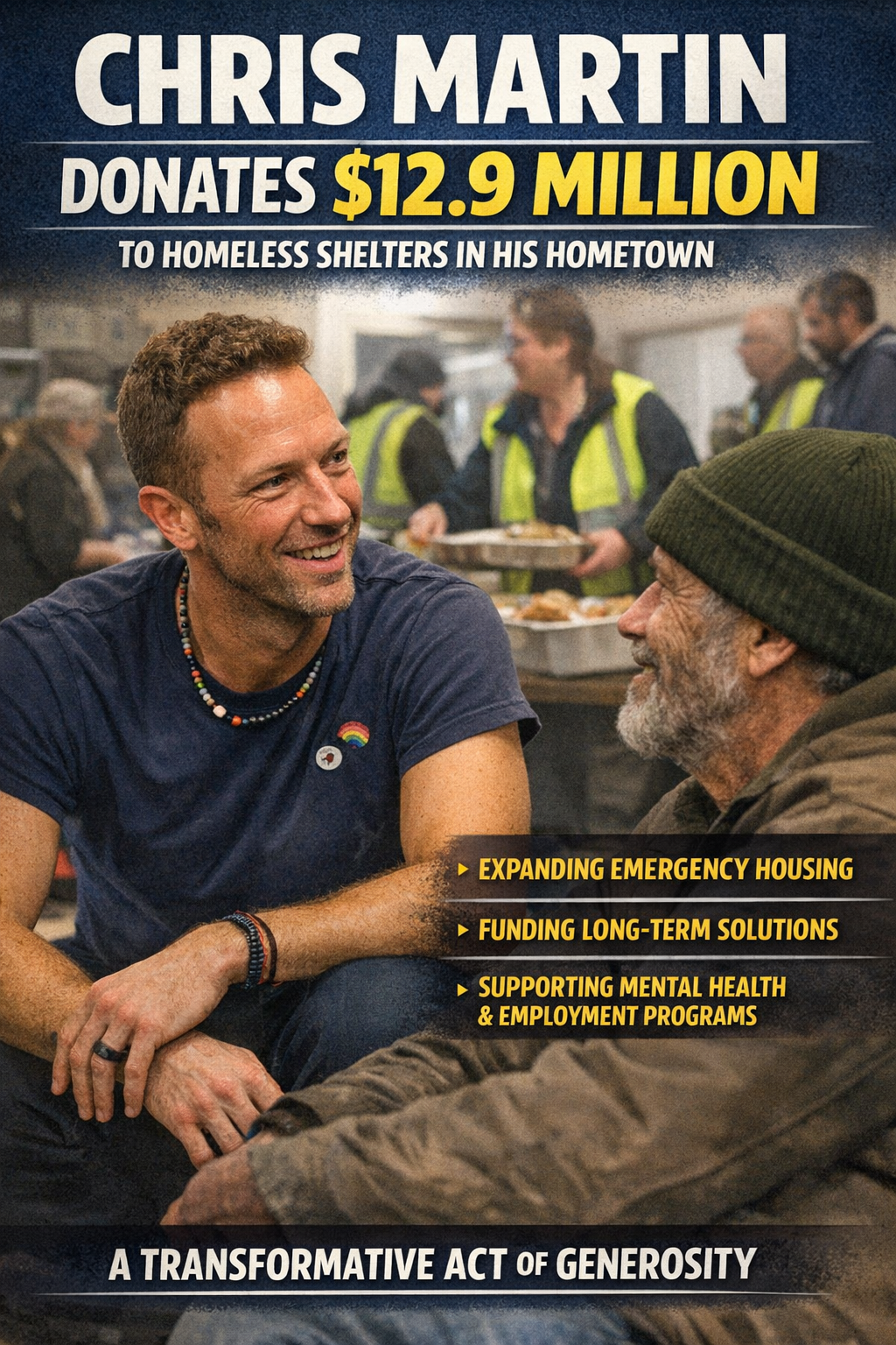 Chris Martin has once again proven that his heart is as powerful as his music. The Coldplay frontman has reportedly donated **$12.9 million** to support homeless shelters and housing initiatives in his hometown, marking one of the most significant philanthropic gestures of his career.