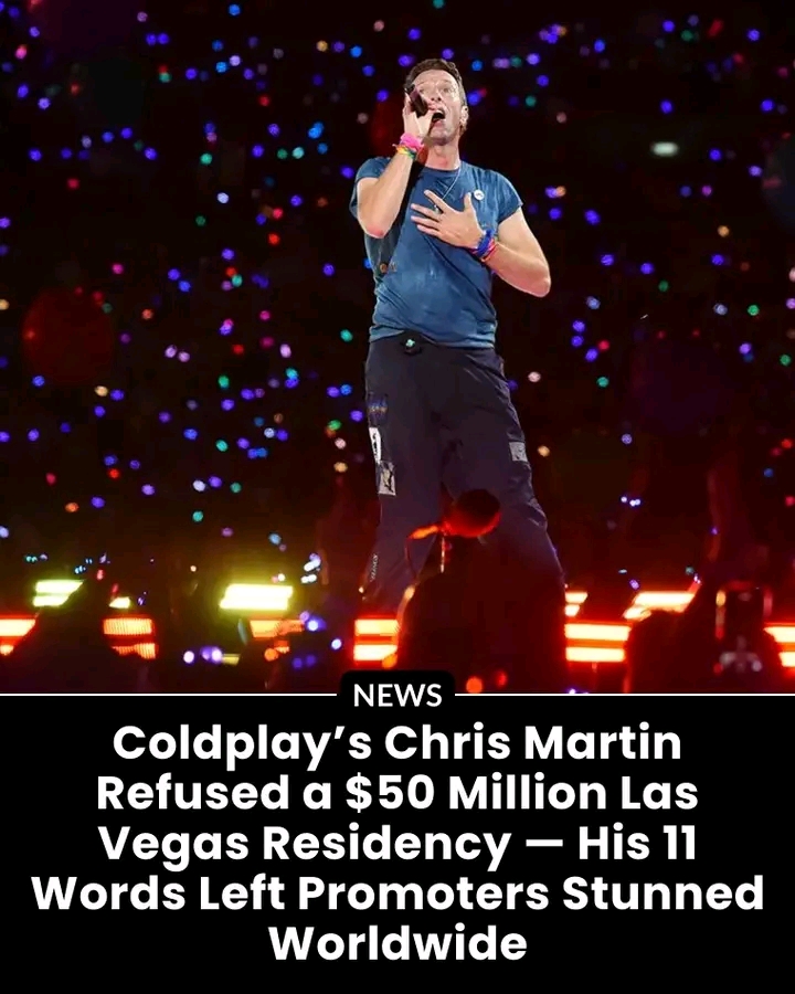 chris martin has just stunned the music world by making a decision few could have imagined: turning down a staggering $50 million las vegas residency. while most artists would leap at the opportunity for a glitzy run under the neon lights, the coldplay frontman quietly chose another path—one rooted in authenticity, passion, and connection. the move instantly sparked global headlines, but what truly captured the world’s attention were the 11 whispered words he offered when asked why he declined the offer.