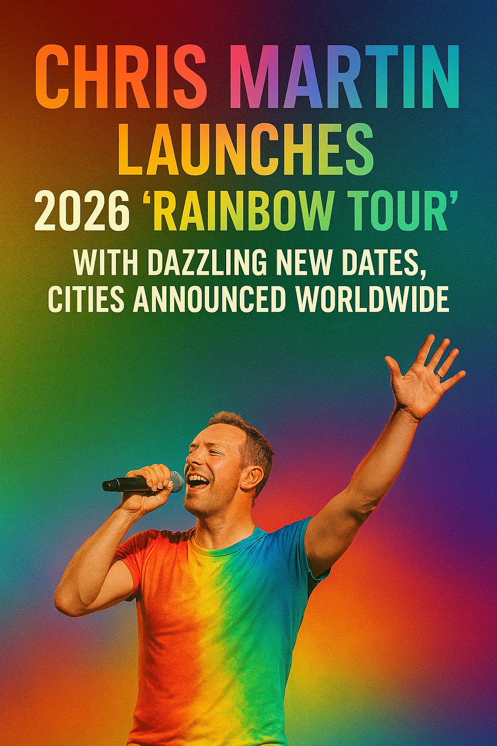 Music fans across the globe are celebrating as Chris Martin has officially announced his highly anticipated 2026 “Rainbow Tour.” The Coldplay frontman is set to embark on a stunning solo journey that promises to bring light, love, and color to some of the world’s biggest stages. After months of rumors and excitement, the confirmed tour dates and cities have finally been revealed — and it’s nothing short of spectacular.