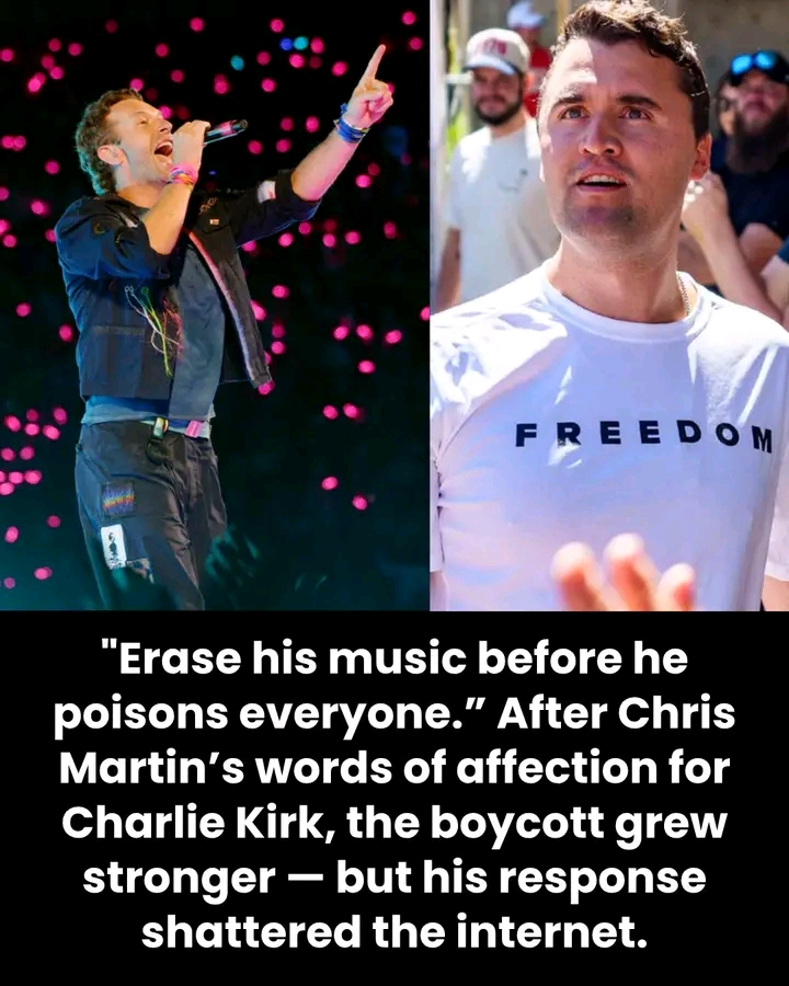 Chris Martin’s recent affectionate words for conservative commentator Charlie Kirk have set off a storm unlike anything Coldplay’s frontman has faced in years. Known for his thoughtful, often apolitical reflections, Martin surprised both fans and critics when he publicly praised Kirk, calling him “a voice of conviction in an age of noise.” The remark instantly went viral, sparking fierce backlash across social media. Many longtime Coldplay followers accused Martin of aligning with a polarizing figure, with hashtags like **#BoycottColdplay** and **#ChrisMartinCancelled** quickly trending.