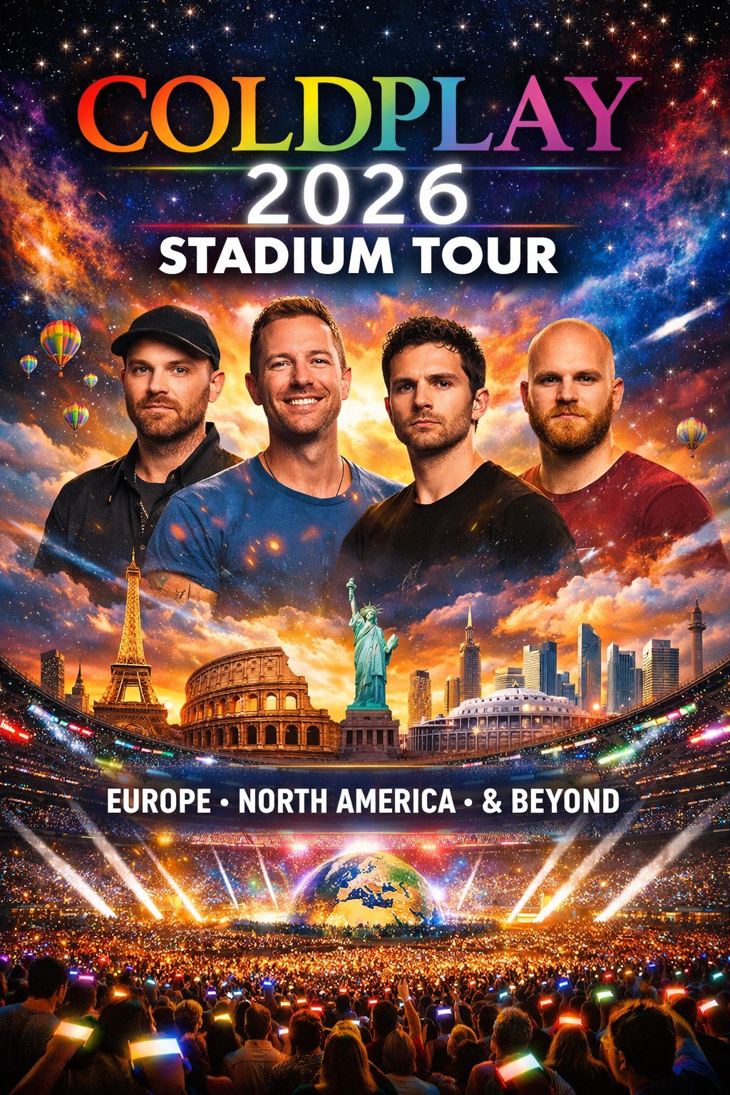 Coldplay have officially lifted the curtain on their highly anticipated 2026 Stadium Tour, confirming a sweeping global run that will take the British superstars across Europe, North America, and several additional international destinations. The announcement has ignited excitement among fans worldwide, marking the band’s bold return to massive open-air venues following years of record-breaking live success.