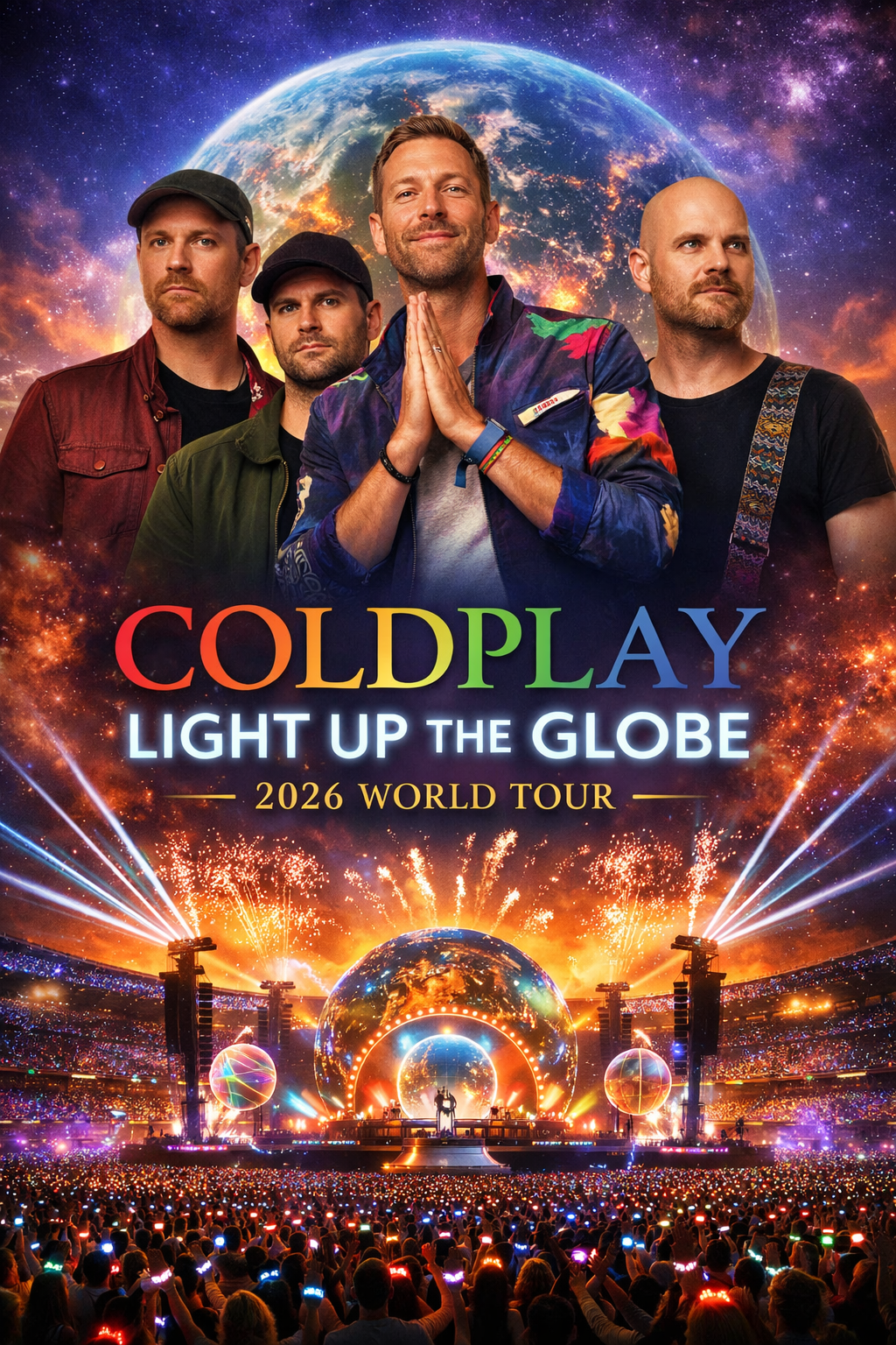 Coldplay has officially unveiled their highly anticipated 2026 world tour, **“Light Up The Globe,”** marking one of the most ambitious global concert runs of their career. Following years of sold-out stadiums and record-breaking attendance on the **Music of the Spheres Tour**, the band is once again raising the bar—both musically and visually.