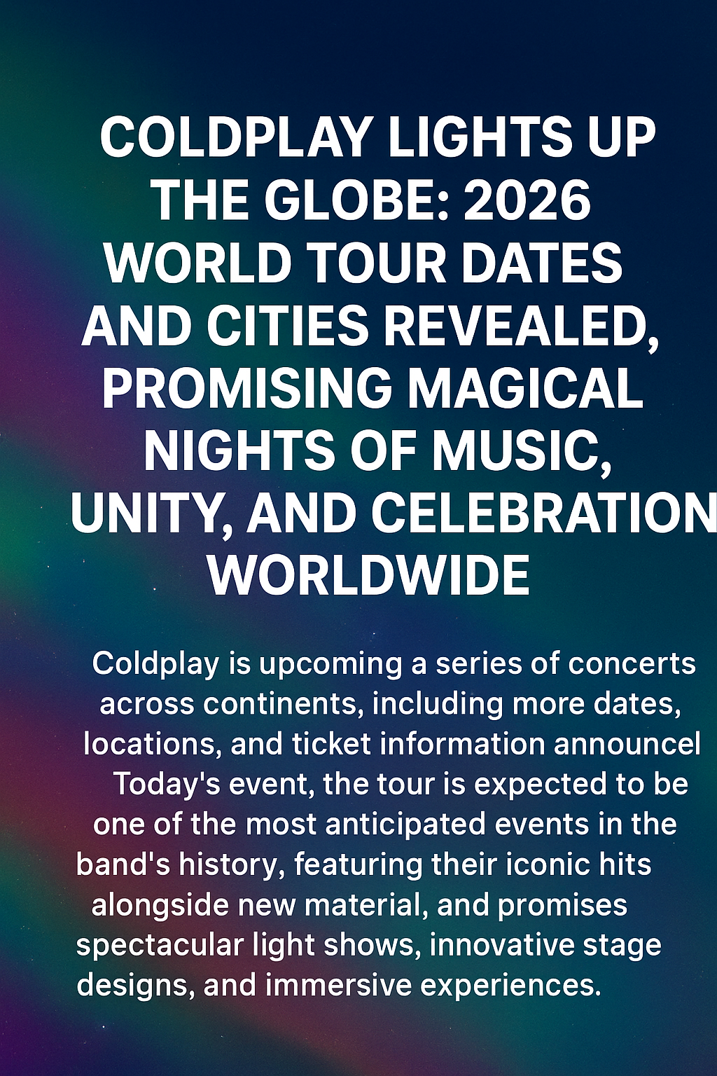 more than just music, this tour represents a shared global moment, bringing people together across cultures and generations. coldplay has long been known for turning their concerts into powerful gatherings of unity, with fans singing in harmony under the glow of lights and colors. as the band prepares to take the stage in 2026, the message is clear—this will be more than a tour, it will be a worldwide celebration of humanity, music, and unforgettable connection.