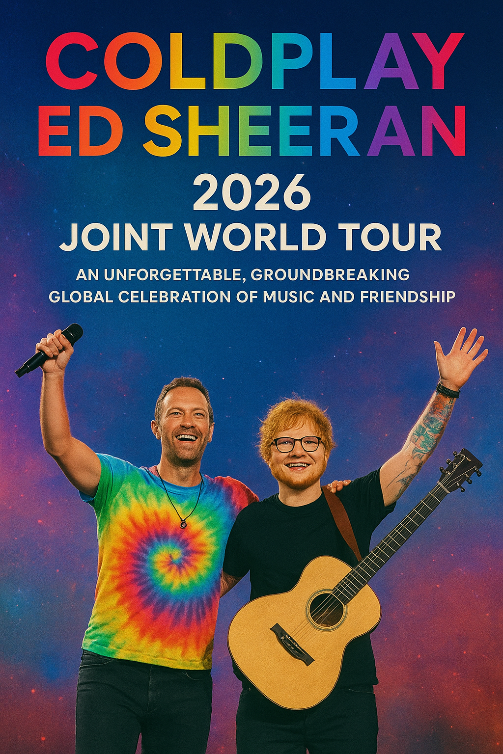 Coldplay’s Chris Martin and Ed Sheeran have officially announced their 2026 Joint World Tour, sending waves of excitement throughout the global music community. This unprecedented collaboration between two of the world’s most beloved and influential artists promises to be a once-in-a-lifetime celebration of music, unity, and friendship. The tour, set to span over five continents, will feature a spectacular blend of Coldplay’s anthemic soundscapes and Ed Sheeran’s heartfelt acoustic artistry — a fusion that fans have long dreamed of witnessing on one stage.