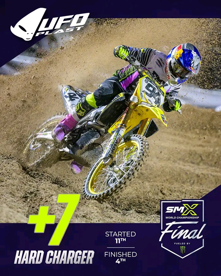 Ken Roczen proved once again why he is considered one of the toughest and most determined riders in motocross, as he earned the **Las Vegas Hard Charger Award presented by UFO Plast USA** for his stunning comeback ride in **450 Moto 2**. The award, which recognizes riders who display relentless determination and the ability to battle through the pack, was well-deserved after Roczen’s inspiring performance under the lights of Sam Boyd Stadium.