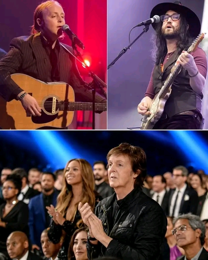 As the chorus swelled, you could see Paul McCartney in the front row press a hand to his heart, his eyes glistening. Next to him, Sean Ono Lennon brushed a tear away, his gaze fixed on the stage. It was as though the song was a bridge across time—a moment where fathers and sons, past and present, all met in a single, unforgettable melody.