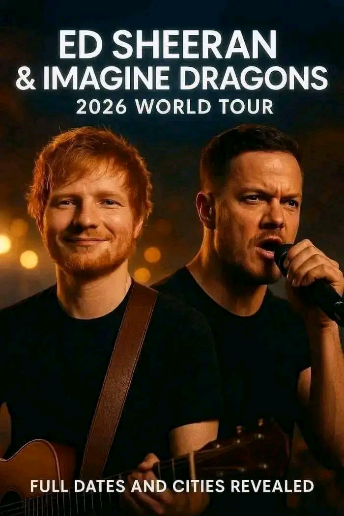 In an announcement that shook the global music scene, pop icon **Ed Sheeran** and rock powerhouse **Imagine Dragons**, led by frontman **Dan Reynolds**, revealed plans for their unprecedented **2026 Co-Headlining World Tour**, titled *“Fire & Shape: The World Tour.”* The tour promises to merge Sheeran’s soulful acoustic storytelling with Imagine Dragons’ electrifying arena-rock energy — a fusion that fans never saw coming but have long dreamed of.