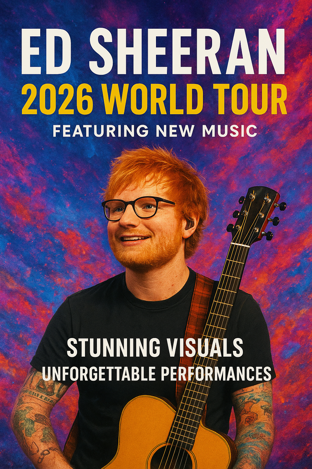 The tour will highlight songs from his highly anticipated upcoming album, blending fresh sounds with the timeless acoustic charm that has defined his career. Fans can expect a mix of intimate performances and arena-shaking energy as Sheeran connects with audiences across North America, Europe, Asia, South America, Africa, and Australia. Each show will feature stunning visuals, dynamic lighting, and state-of-the-art effects designed to bring his lyrics and melodies vividly to life.
