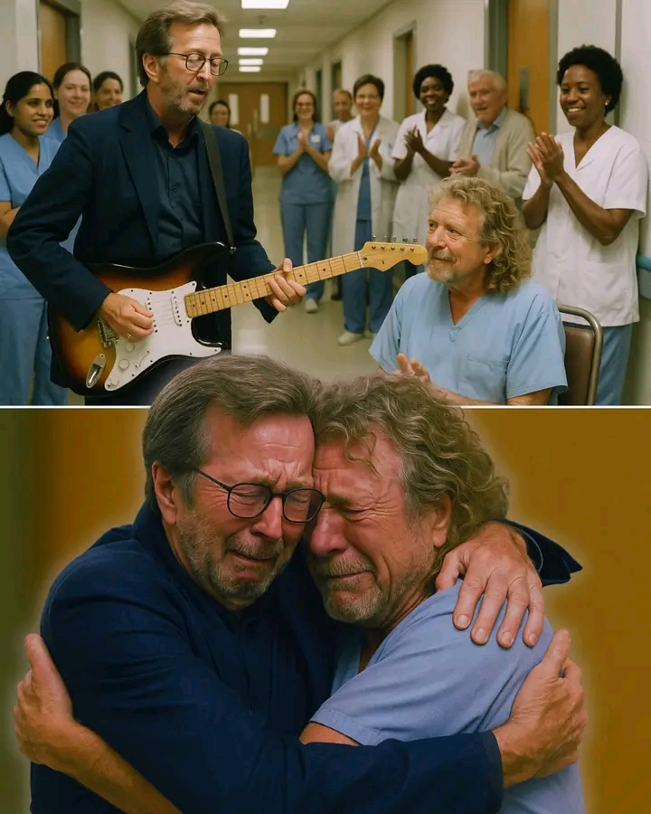 Inside the room beyond the music, Robert Plant lay unconscious — his legendary voice silenced by a sudden and severe medical emergency. Clapton didn’t speak much. He only glanced at the door and murmured, “I couldn’t go inside… but maybe he can still hear me.”