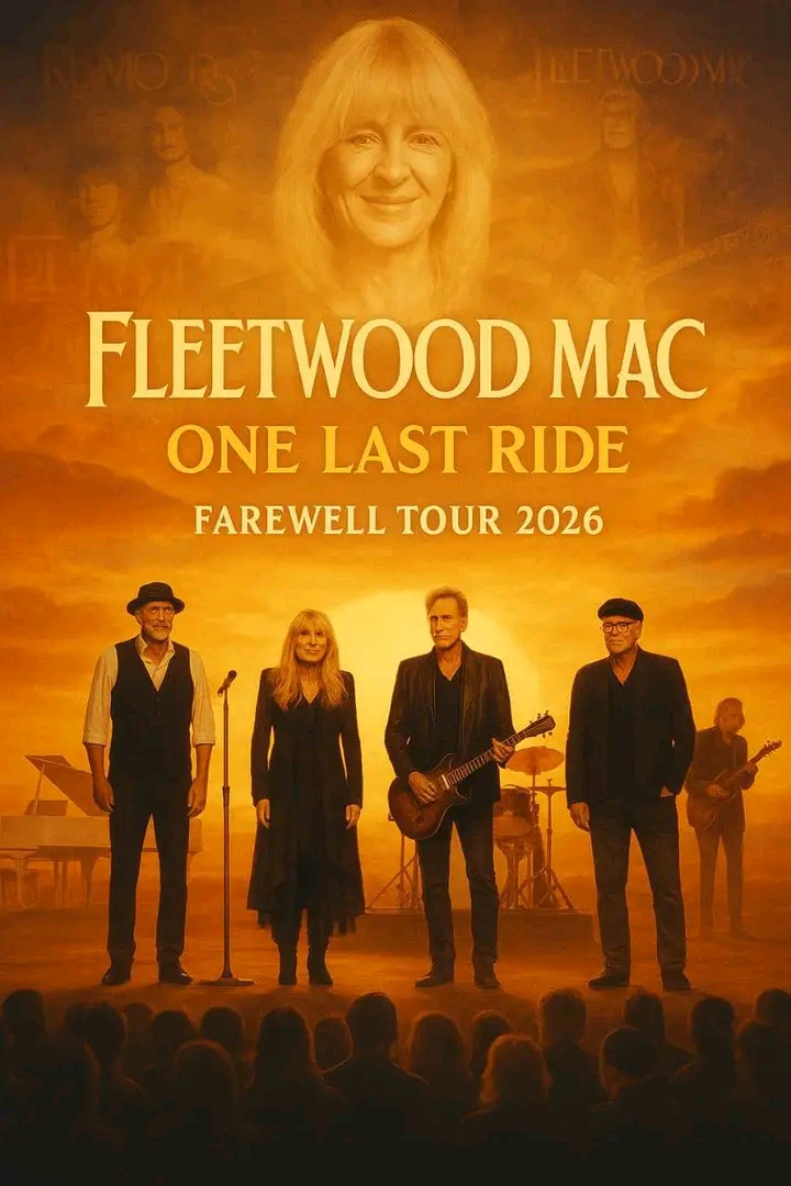 After more than five decades of making music that defined generations, Fleetwood Mac has officially announced their 2026 farewell tour, poignantly titled *One Last Ride*. The legendary band—known for their timeless hits like “Go Your Own Way,” “Dreams,” and “The Chain”—will embark on a final, emotionally charged world tour that celebrates their unparalleled legacy and bids a heartfelt goodbye to fans across the globe.