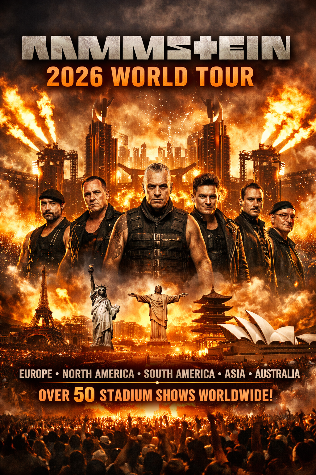 German industrial metal giants **Rammstein** have officially unveiled their massive **2026 World Tour**, confirming one of the most ambitious global concert runs of their legendary career. After months of speculation and mounting fan anticipation, the band’s announcement has ignited excitement across rock and metal communities worldwide.