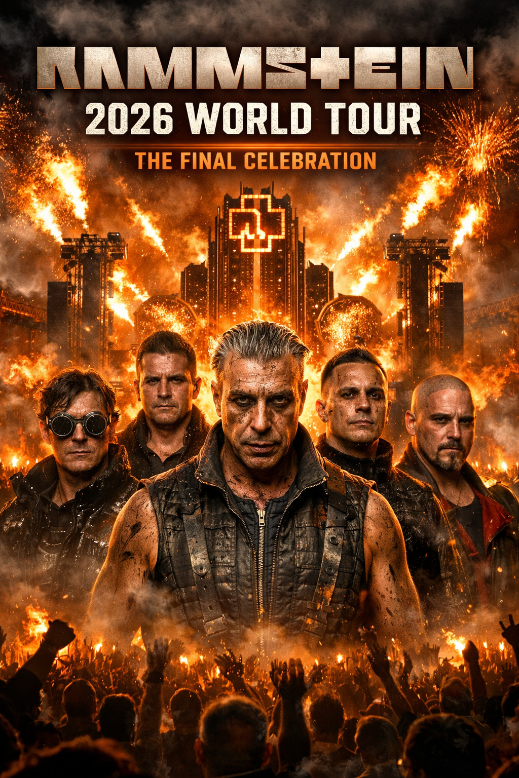 German industrial metal legends **Rammstein** have officially set the music world ablaze with the announcement of their highly anticipated 2026 world tour, widely being billed as a potential farewell celebration of their extraordinary career. Known for their pyrotechnic-heavy performances, theatrical stage presence, and genre-defining sound, the band’s latest tour promises to be an unmissable spectacle for fans across the globe.