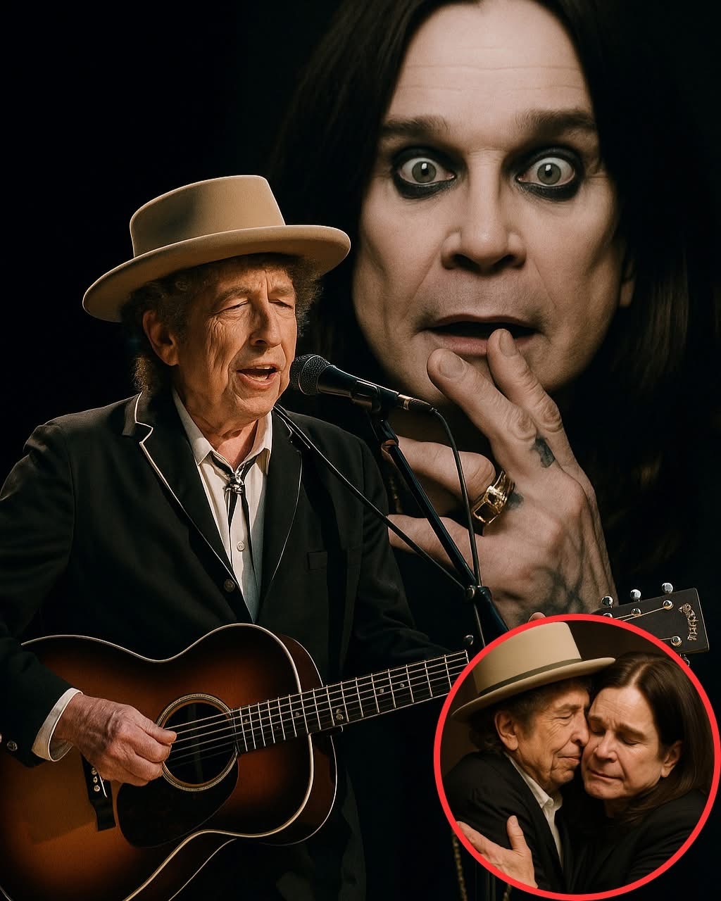 From the shadows, Dylan emerged. His silver hair caught the light like fading moonlight. He looked older than ever, yet somehow untouched by time. Taking the mic with trembling hands, he said just one thing: “Ozzy changed my life.”