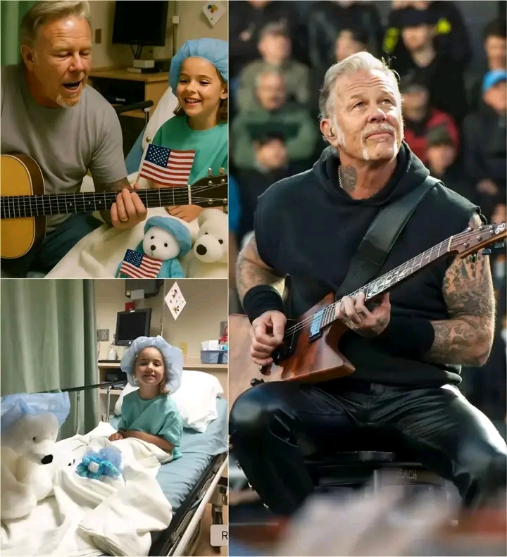 Without any media attention or fanfare, Hetfield walked into the hospital carrying his guitar and a simple goal: to bring comfort to children facing serious illnesses. One young patient, a devoted Metallica fan battling leukemia, couldn’t believe his eyes when his musical hero entered the room. James sat beside the boy’s bed, gently strummed **“Nothing Else Matters,”** and shared stories about hope, strength, and the healing power of music.