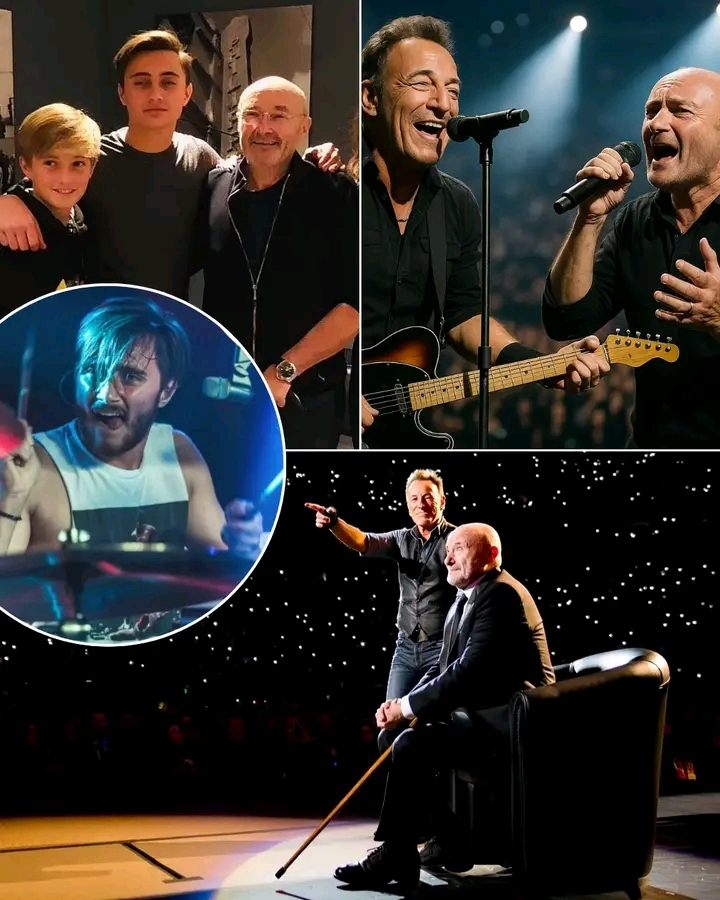 From the very first beat, it was clear: Nic Collins wasn’t just filling in. He was channeling his father’s unmistakable energy and finesse with every strike of the kit. The crowd roared as “Born to Run” exploded through the arena, with Nic powering the performance like he’d been part of the E Street Band for years. Phil Collins, watching from the wings, was visibly emotional—his pride unmistakable as his son carried the family torch on one of rock’s most sacred stages.