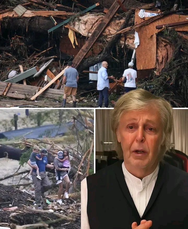 **“I just kept thinking of the fathers… the children still out there,”** McCartney said, his voice cracking as he paused beside a shattered home. What was intended to be a discreet \$3.5 million donation to flood relief efforts turned into something far more profound: a personal mission of compassion.
