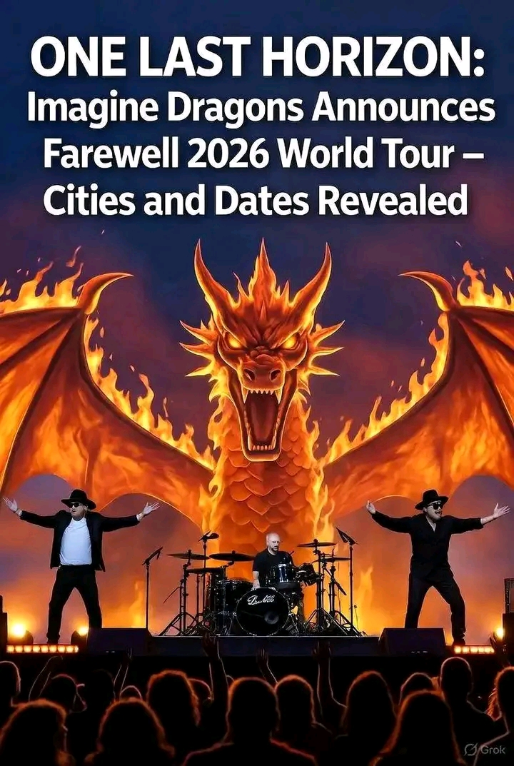 In a heartfelt announcement that has sent shockwaves through the global music community, **Imagine Dragons** have officially revealed plans for their **farewell 2026 world tour**, titled *“One Last Horizon.”* After over a decade of chart-topping success, record-breaking shows, and anthems that defined a generation, the Las Vegas rock icons are preparing to take their final bow.